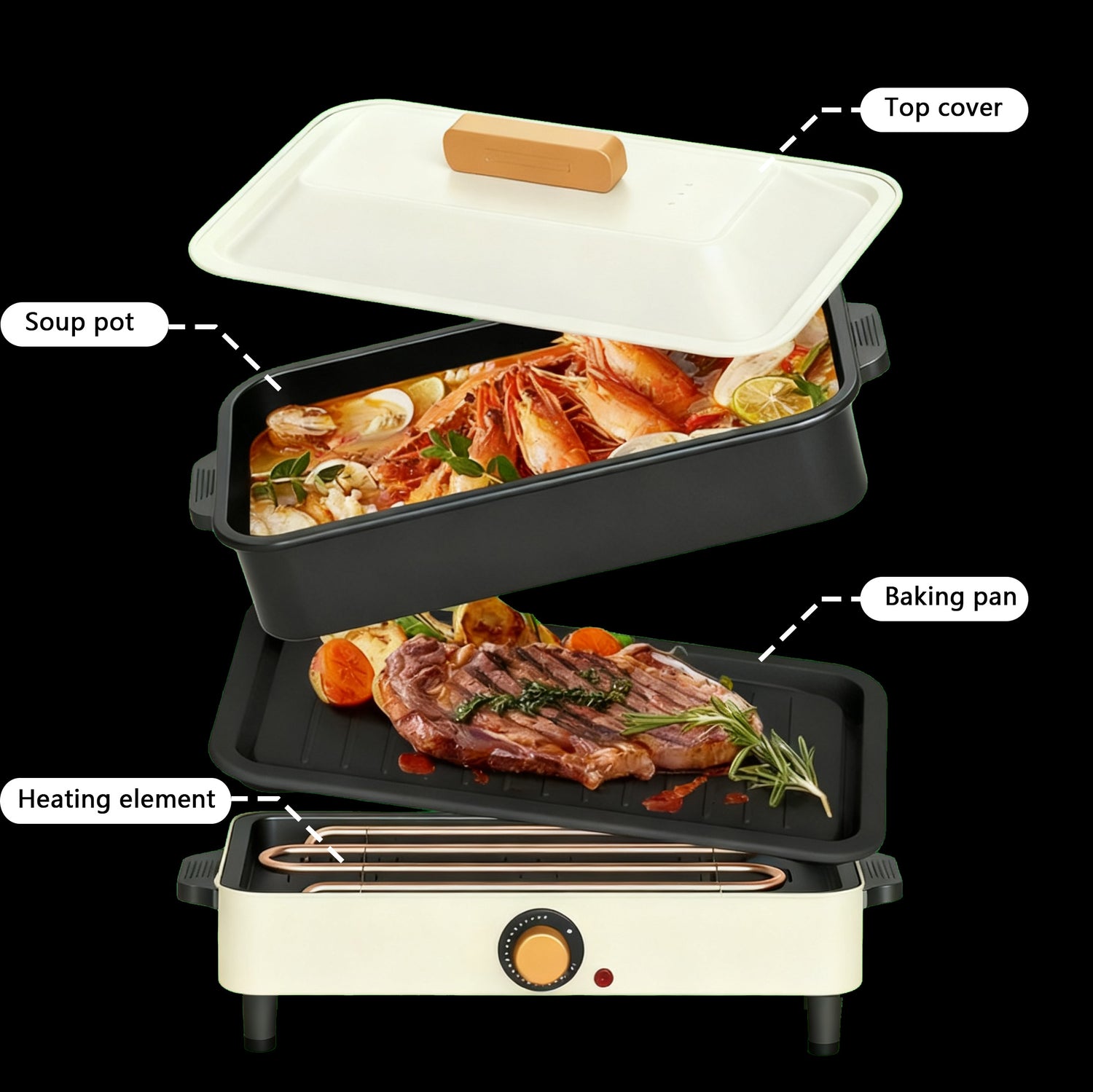The KRAKOBBQ Electric Grill is designed to bring restaurant-style versatility into your home. Whether you want to enjoy hotpot, grill your favorite meats, or cook everyday dishes, this all-in-one unit gives you multiple cooking options in a single compact system.